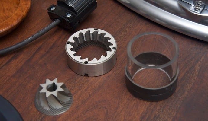 每个磨床是不同的,你应该检查你的手册,看看你的交易是什么。通常情况下,你要移除料斗和上部的磨削套管-任何允许你接触毛刺的东西。这可以让你进入角落和缝隙,清除周围漂浮的咖啡灰尘和其他东西。